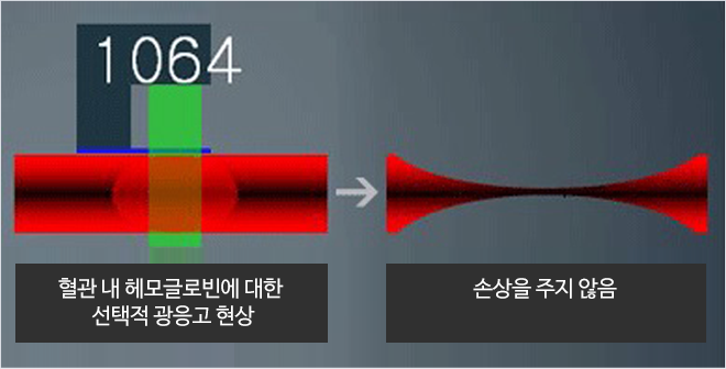 듀얼토닝의 1,064nm 롱펄스 엔디야그 레이저는 어떤 발색단에도 흡수도가 떨어지며 산란이 적기 때문에 모든 파장 중에서 가장 피부에 깊이 침투할 수 있으므로 영구제모에도 매우 효과적입니다.