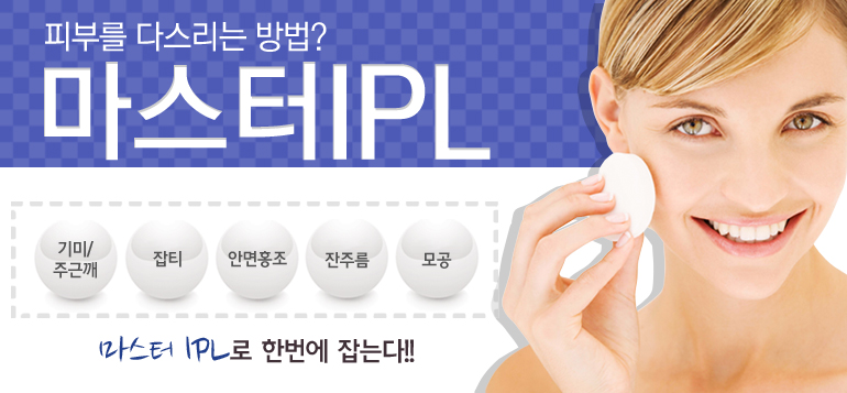 마스터IPL은 기존의 IPL보다 피부손상, 부작용은 줄이고 더 좋은 결과를 가져다 주는 치료 시스템입니다. 기존의 IPL이 가지는 주근깨, 잡티, 안면홍조, 잔주름, 늘어난 모공 등의 피부를 개선시킴과 동시에 특수 필링을 병행하여 개선 결과를 높이고 색소차단술을 마무리 작업으로 시술하여 IPL의 효과는 보존하는 시술입니다.