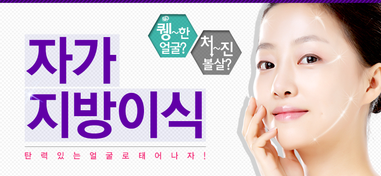 자가지방이식은 자가조직을 이용하여 필요한 곳을 채워 주는 수술입니다. 복부. 엉덩이, 허벅지 등 잉여의 지방이 있는 곳에서 지방을 흡입하여 눈 밑이나 함몰이마, 꺼진 볼, 무턱, 입 주위 팔자주름 같은 부위에 지방을 채워줌으로 일석이조의 효과를 얻을 수 있습니다. 몸에서 채취한 지방을 원심분리하여 농축한 후 1cc 주사기로 얼굴의 여러 층에 조금씩 이식하는 미세한 기법으로 이물질에 대한 염려도 없고 주사 후 일정기간이 지난 다음 생존한 지방은 영구적으로 흡수되지 않고 유지할 수 있는 것이 특징입니다. 광대뼈와 턱뼈를 제외한 모든 얼굴 부위에 윤곽성형은 지방이식 시술이 가능합니다.